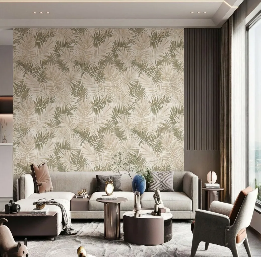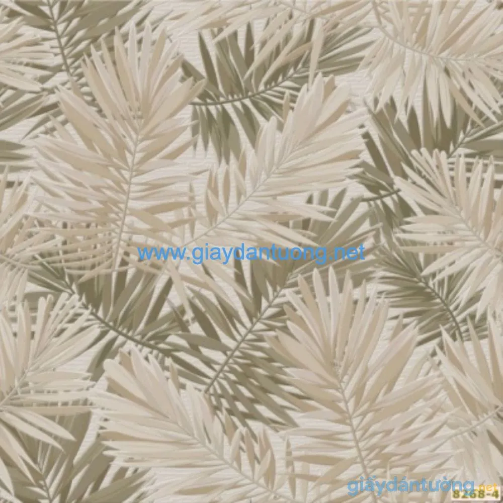 Giấy Dán Tường Art Deco Mã 8268-4 Xanh Rêu Nhạt Hoạ Tiết Lá Cọ Mộc Mạc