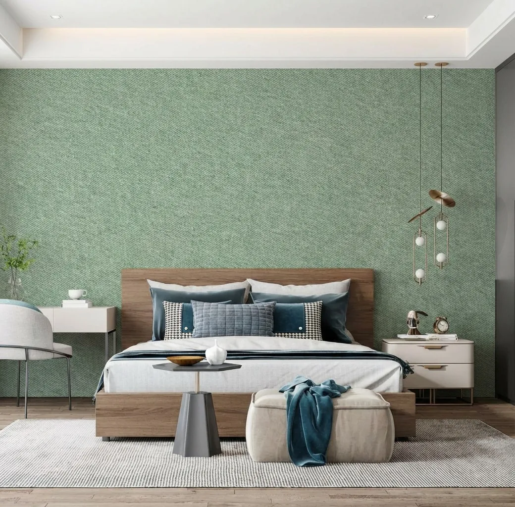 Giấy Dán Tường Base Mã 3806-5 Dạng Gân Màu Xanh Lá