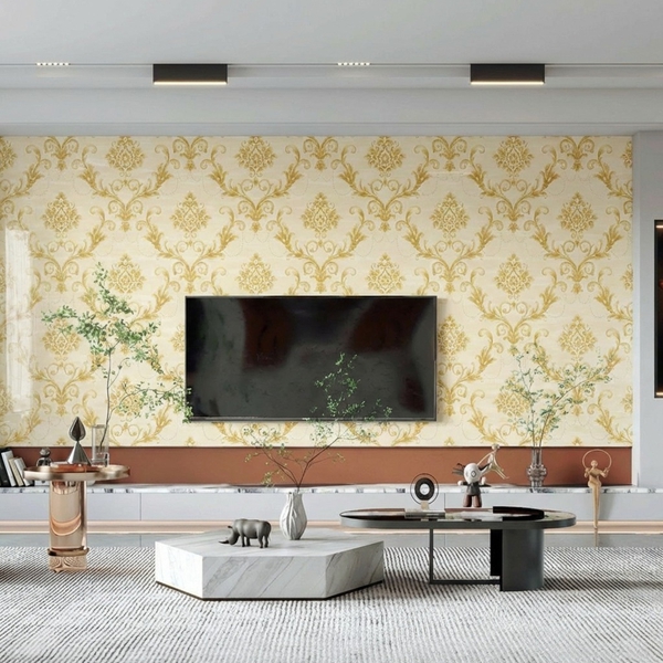 Giấy Dán Tường Cassia Mã 8701-2 Vàng Hoàng Gia Cổ Điển