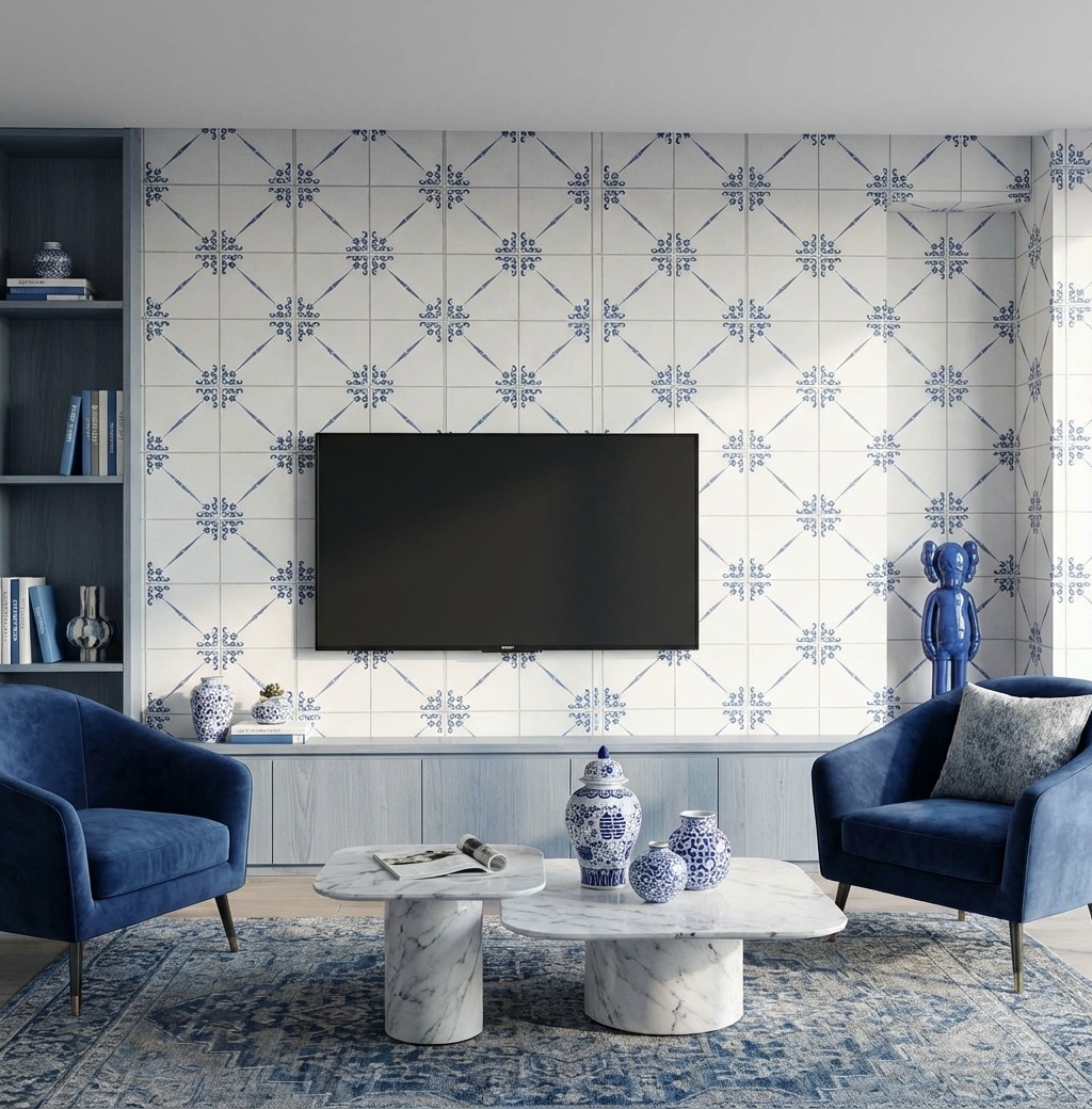 Giấy Dán Tường Nhật Bản Mã Ba6346 Màu Trắng Phối Xanh Hoạ Tiết Hiện Đại