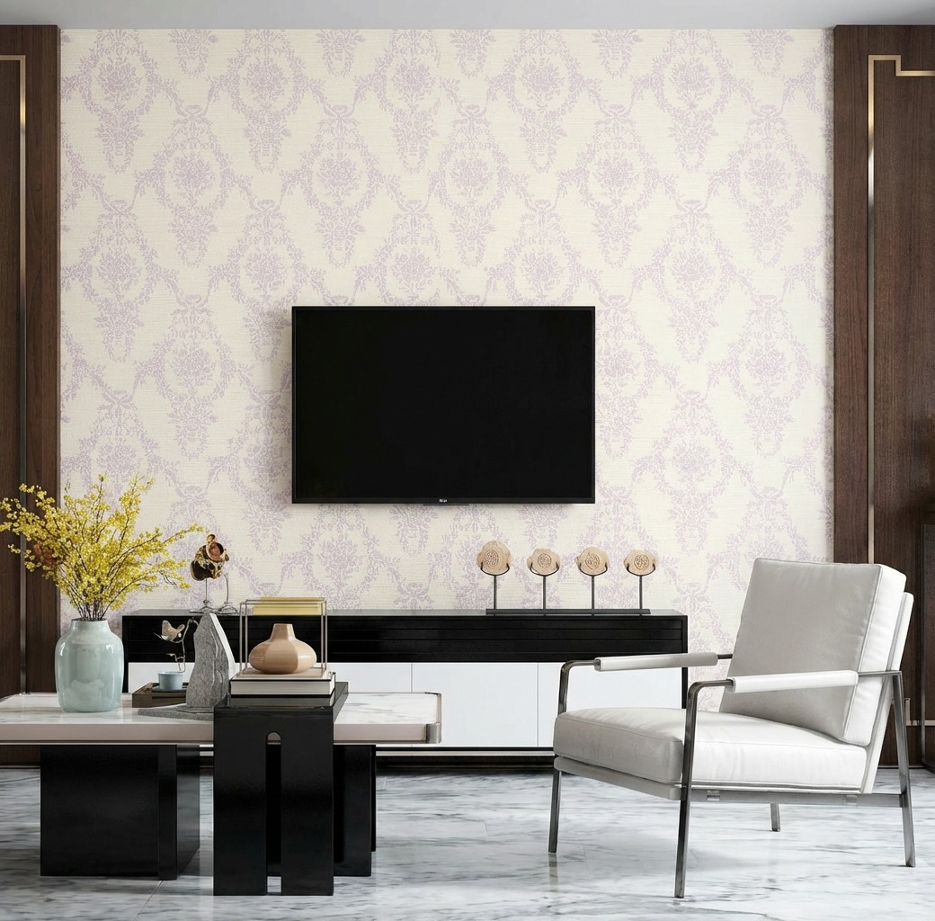 Giấy Dán Tường Nhật Bản Mã Ba6399 Màu Kem Phối Tím Hoa Văn Cổ Điển