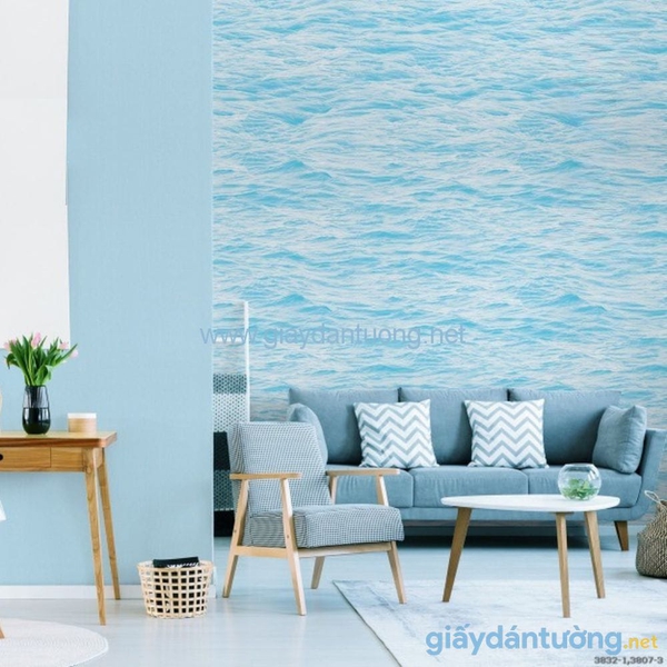 Giấy Dán Tường Phòng Khách Màu Xanh Đẹp 3832-1 & 3807-3KG