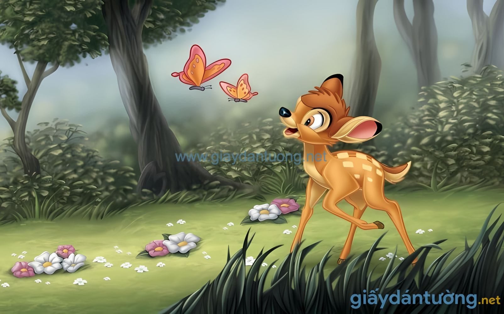Tranh Dán Tường 3d Trẻ Em Chủ Đề Hươu Đốm Trong Rừng Sâu - DW-239