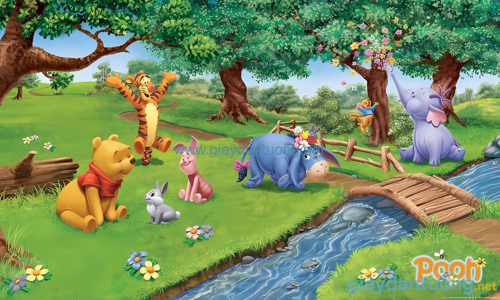 Tranh Dán Tường Gấu Pooh Và Những Người Bạn Bên Suối Mã DW-270