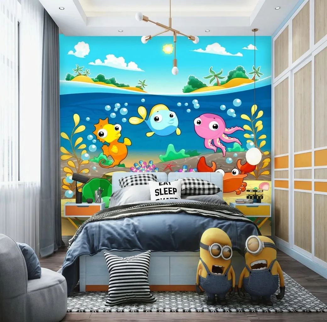 Tranh Dán Tường Hoạt Hình KD040: Thế Giới Đại Dương Kỳ Diệu