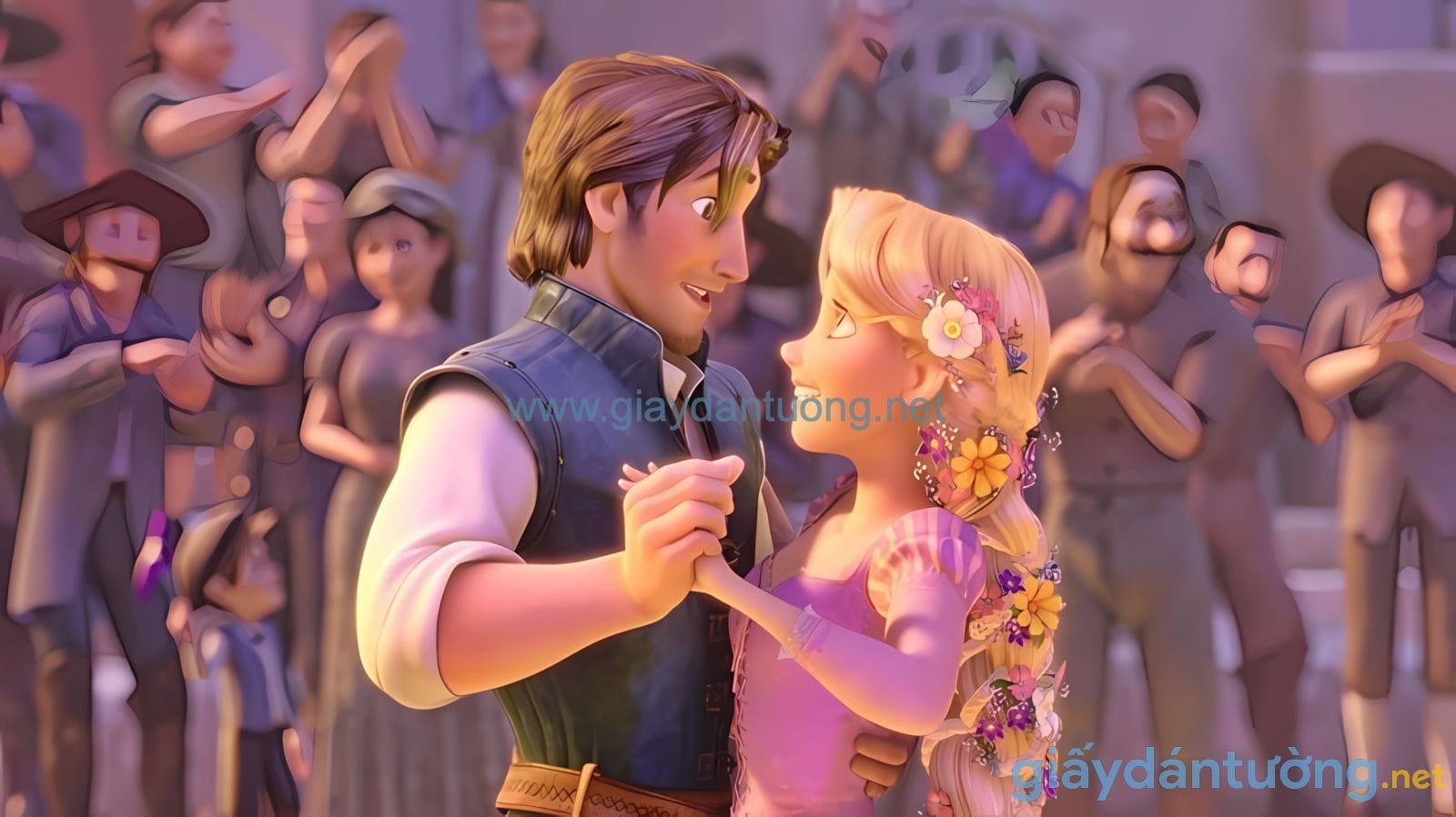 Tranh Dán Tường Hoạt Hình: Rapunzel Bên Flynn Rider Khiêu Vũ DW-083
