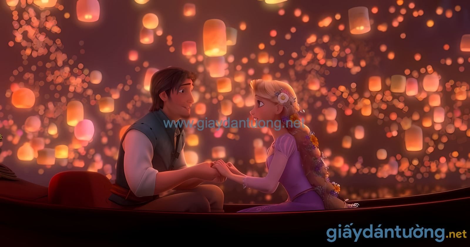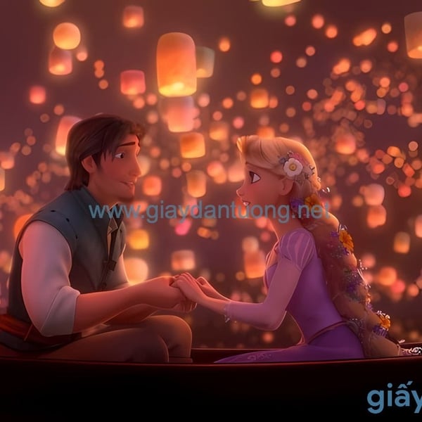Tranh Dán Tường Hoạt Hình: Rapunzel Và Flynn Trong Đêm Đèn Lồng DW-086