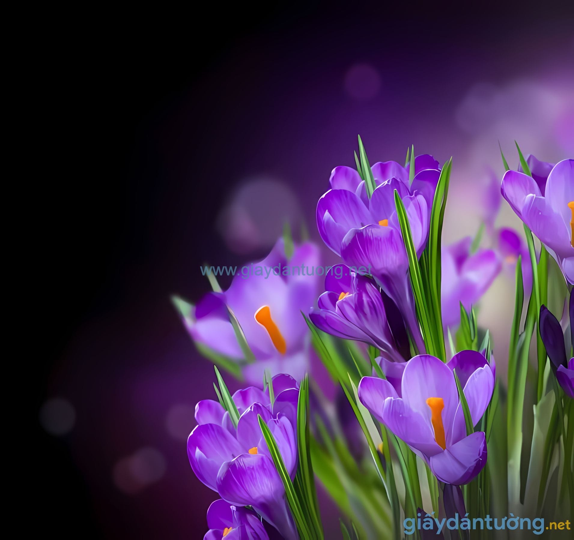Tranh Dán Tường Hoa FC024: Hoa Nghệ Tây Tím Biếc