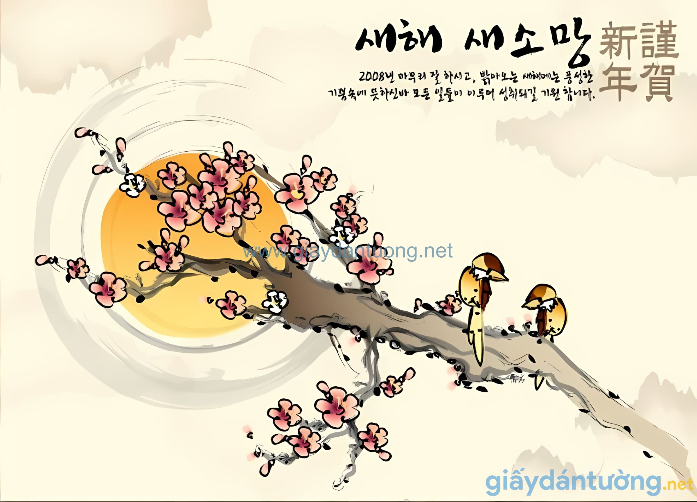Tranh Dán Tường Hoa FL033: Xuân Chim Ca