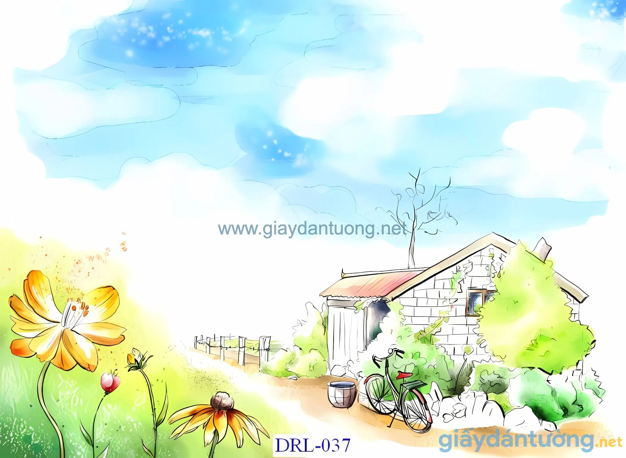 Tranh Dán Tường Lãng Mạn DRL-037: Ngôi Nhà Bên Đường Hoa