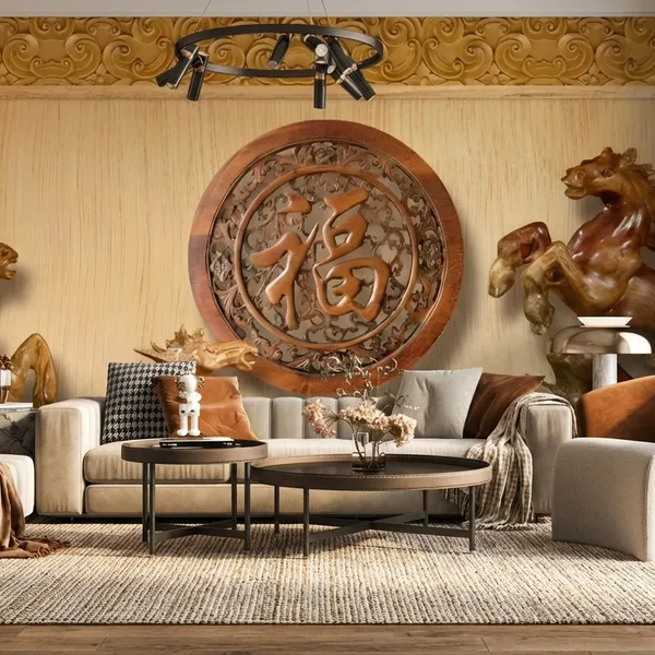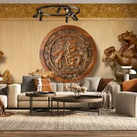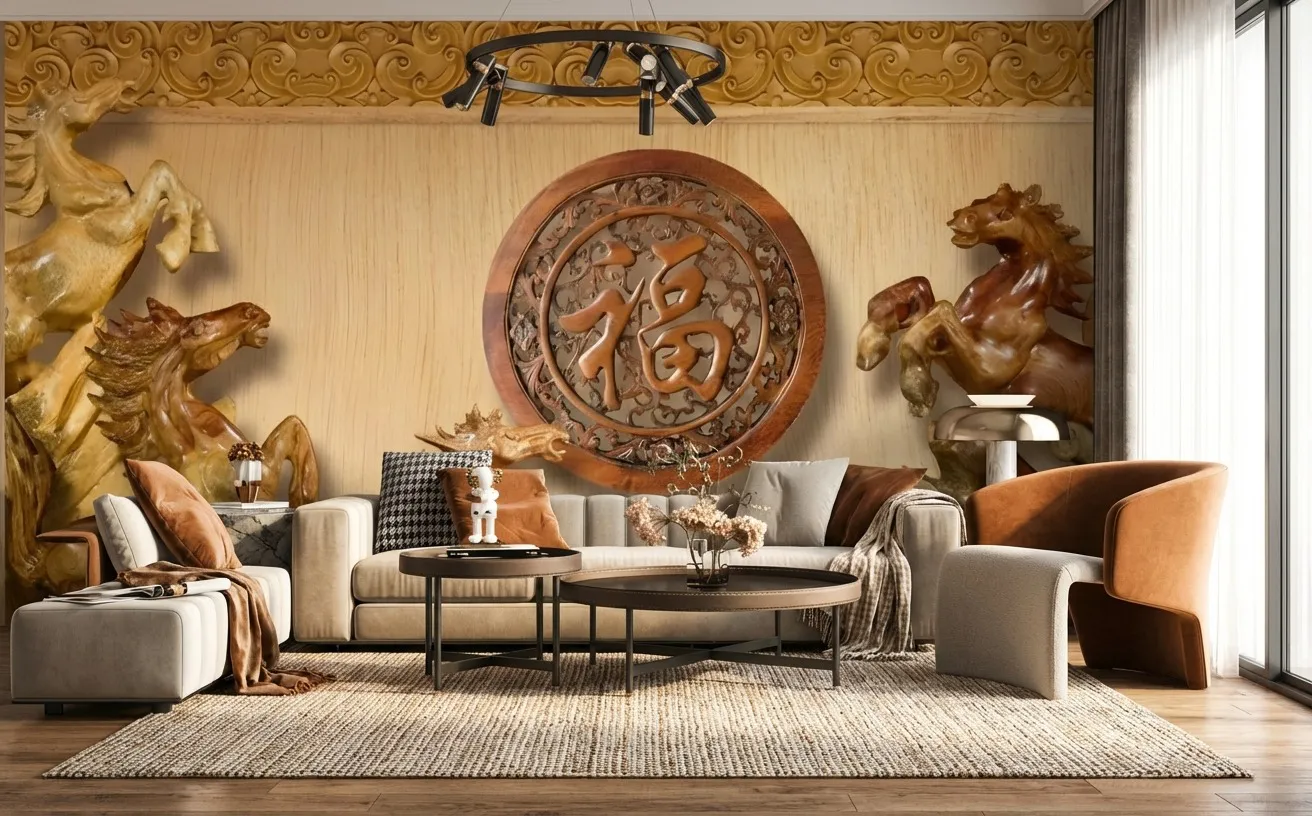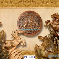 Tranh Ngọc Dán Tường PTN-004: Bát Mã Truy Phong Gỗ